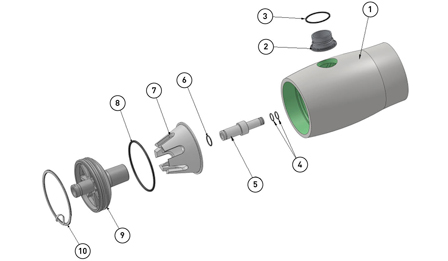 - End plug assembly: Single-piece head assembly for non coded models with high-grade thermoplastic material reduces the number of spares
