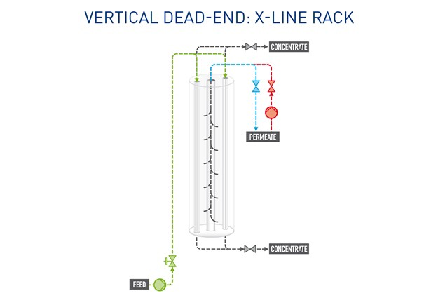 The core of the HFS60 membrane technology is the single-fiber, inside-out filtration process that delivers a robust solution. The modules are operated vertically and can be configured in four different ways: