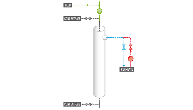 - Smooth, downward flow to the membrane elements